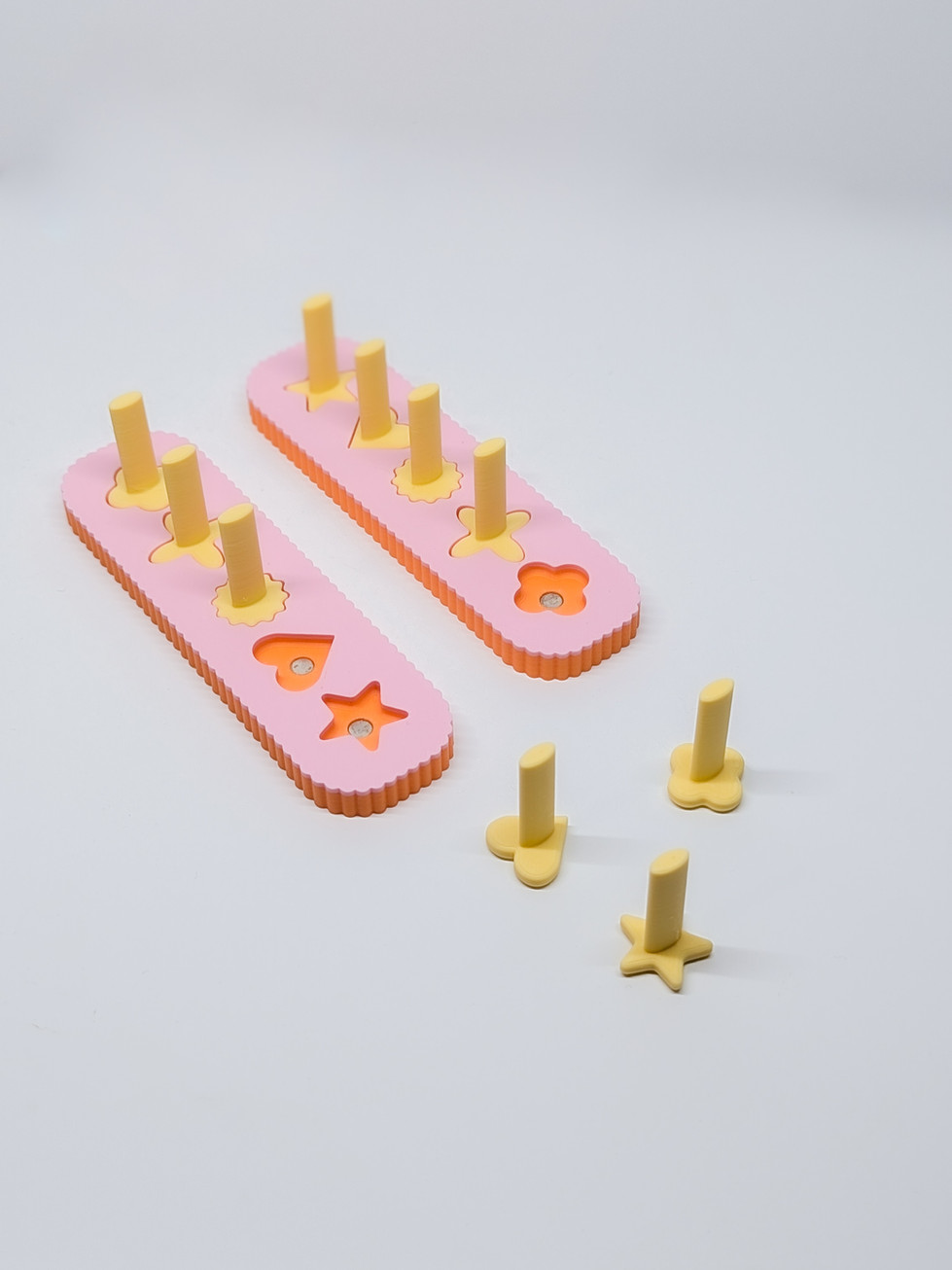 The perfect nail stand for any artist who's sick of the industry standard chess piece stands. Featuring two tone colorway with "left" and "right" marks on the underside to keep your designs coordinated with the correct hand. I created this line to solve my own personal problem of never being able to find a nail stand that was small enough for my small nail tips (I hate getting excess product on my stands). These are the smallest stands I've seen on the market and they're cute AF!