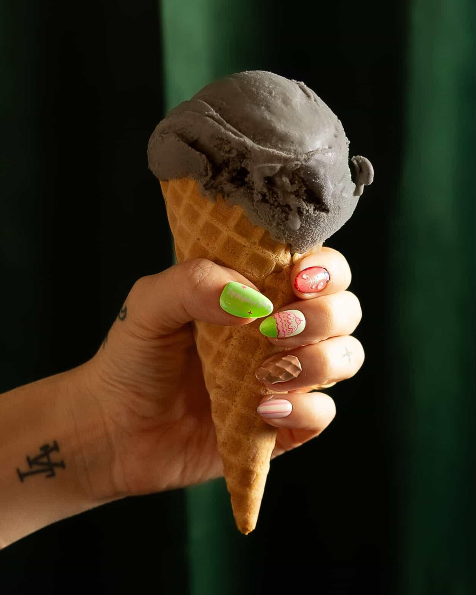 Limited edition set done as a collab with Creaminal (the coolest ice cream brand in SB 😎) design features 3D waffle cone nails, mango and strawberry designs, and the Creaminal robber