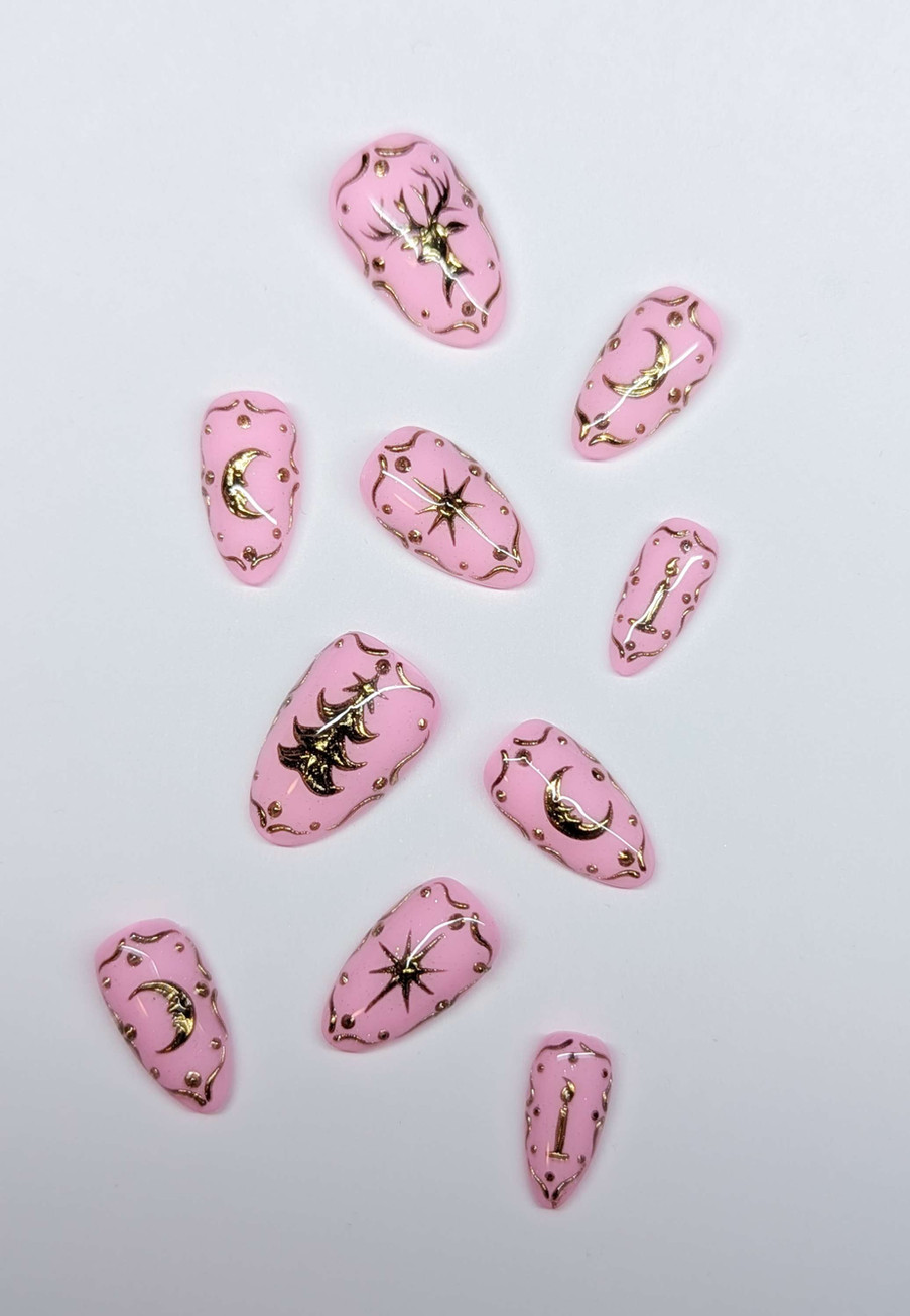 - Hand painted, reusable, gel press on nails